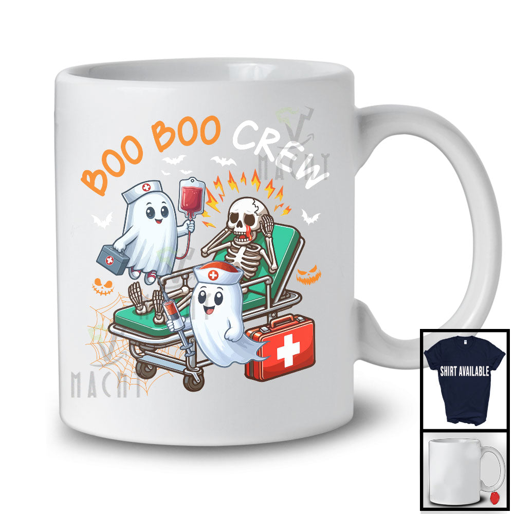 Boo Boo Crew; Humorous Halloween Costume Ghost EMT Nurse; Nursing Lover Family Group T-Shirt. This cotton t-shirt is a durable staple product with a classic fit. One of the most popular items, it has a relaxed style made for everyday and casual wear.