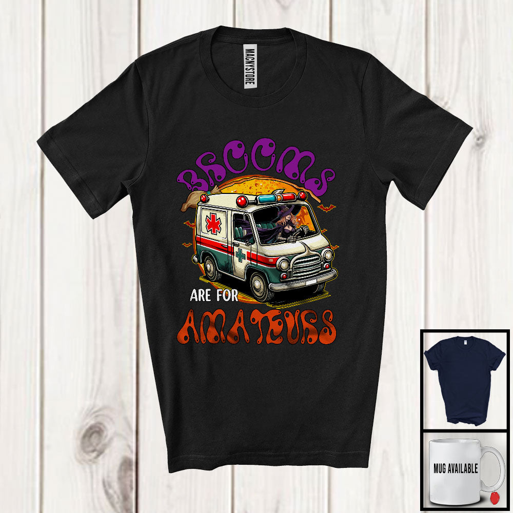 The Brooms Are For Amateurs, Sarcastic Halloween Witch Driving Ambulance Driver, Family Group T-Shirt destined to impress, and priced at only $12.95, for a limited time.
