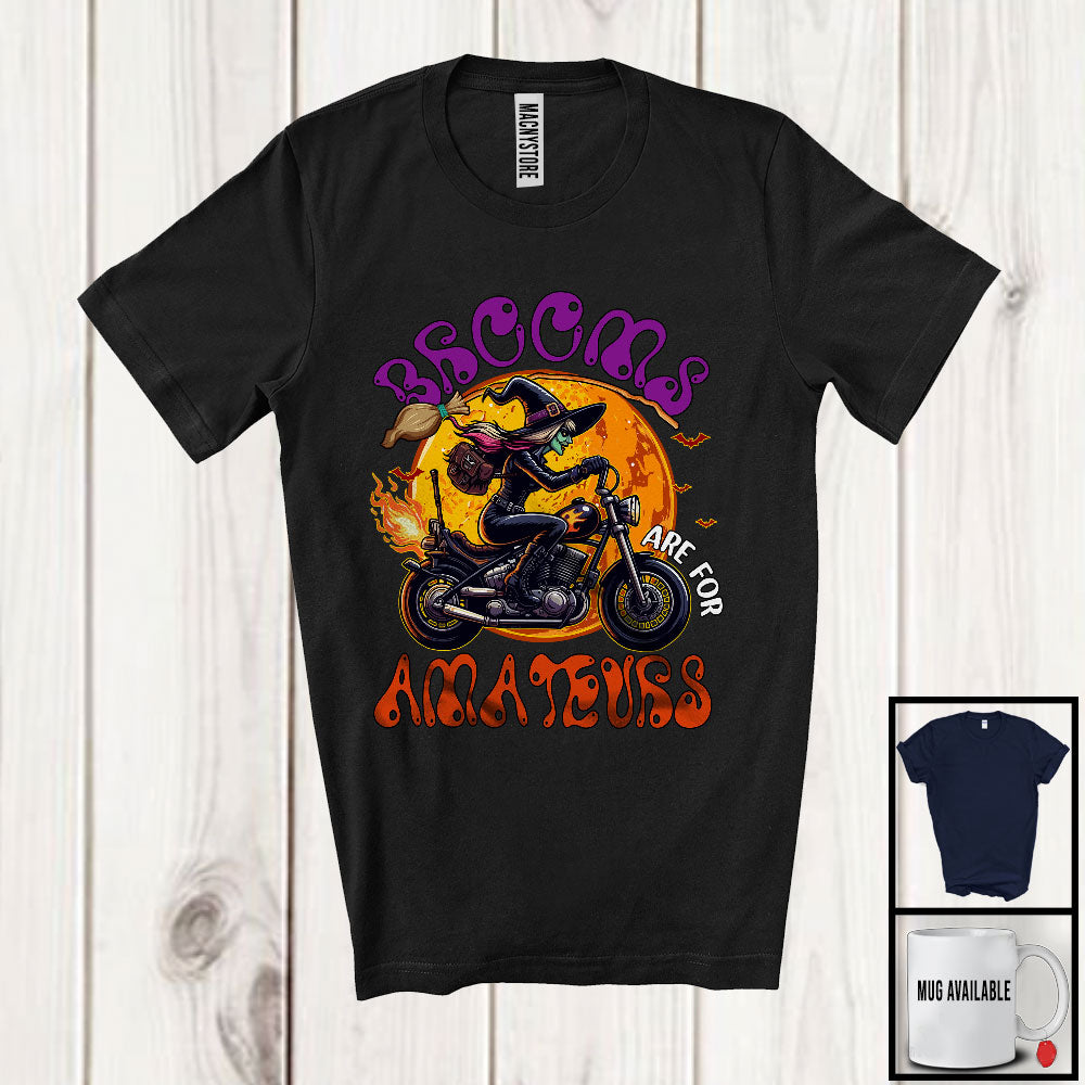 new MacnyStore - Brooms Are For Amateurs, Sarcastic Halloween Witch Riding Motorbike Biker, Family Group T-Shirt – Macnystore