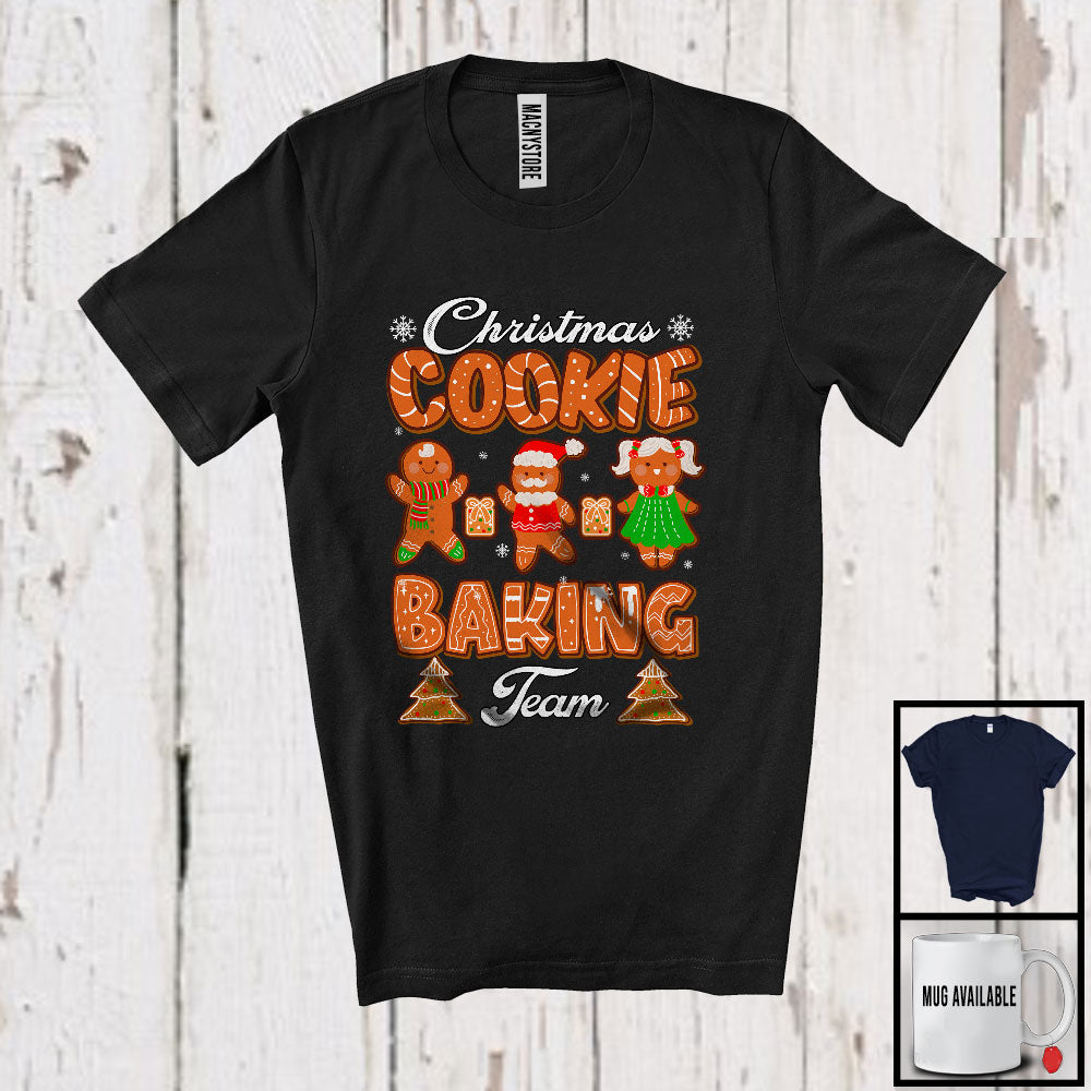 Christmas Cookie Baking Team; Adorable Christmas Three Gingerbreads Family; X-mas Group T-Shirt. This cotton t-shirt is a durable staple product with a classic fit. One of the most popular items, it has a relaxed style made for everyday and casual wear.