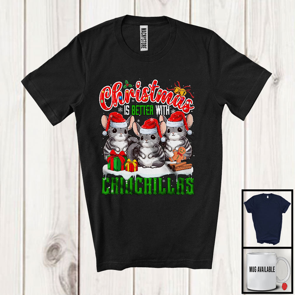 Christmas Is Better With Chinchillas; Adorable X-mas Three Santa Chinchilla; Family Group T-Shirt