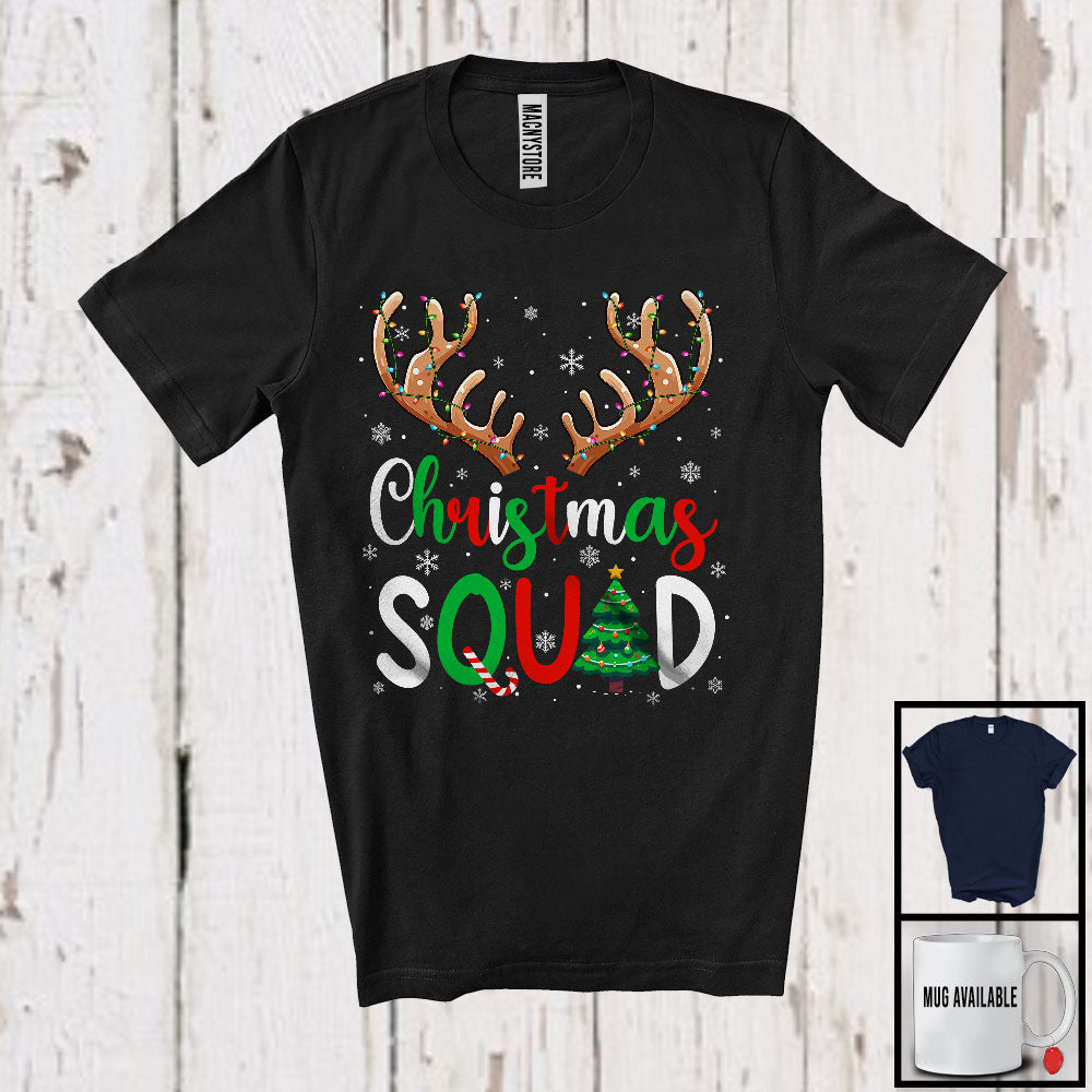 Christmas Squad; Awesome Christmas Reindeer Horn Snowing; X-mas Tree Family Group T-Shirt