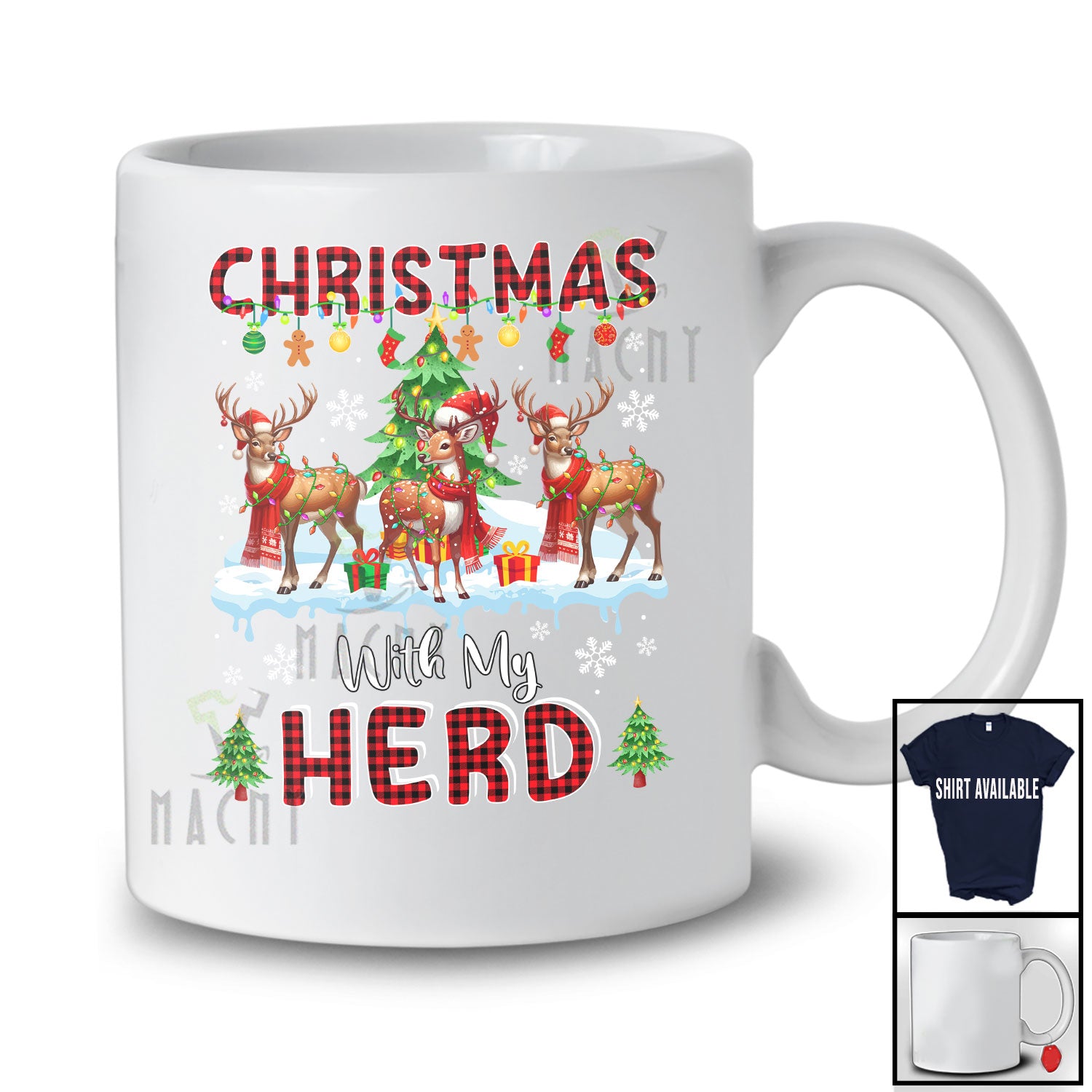 This Christmas With My Herd; Fantastic X-mas Tree Snowing Three Santa Reindeer; Red Plaid Farmer T-Shirt is great idea gift for your family, friends in this birthday, christmas, mother's day, father's day, patrick's day or any holiday.