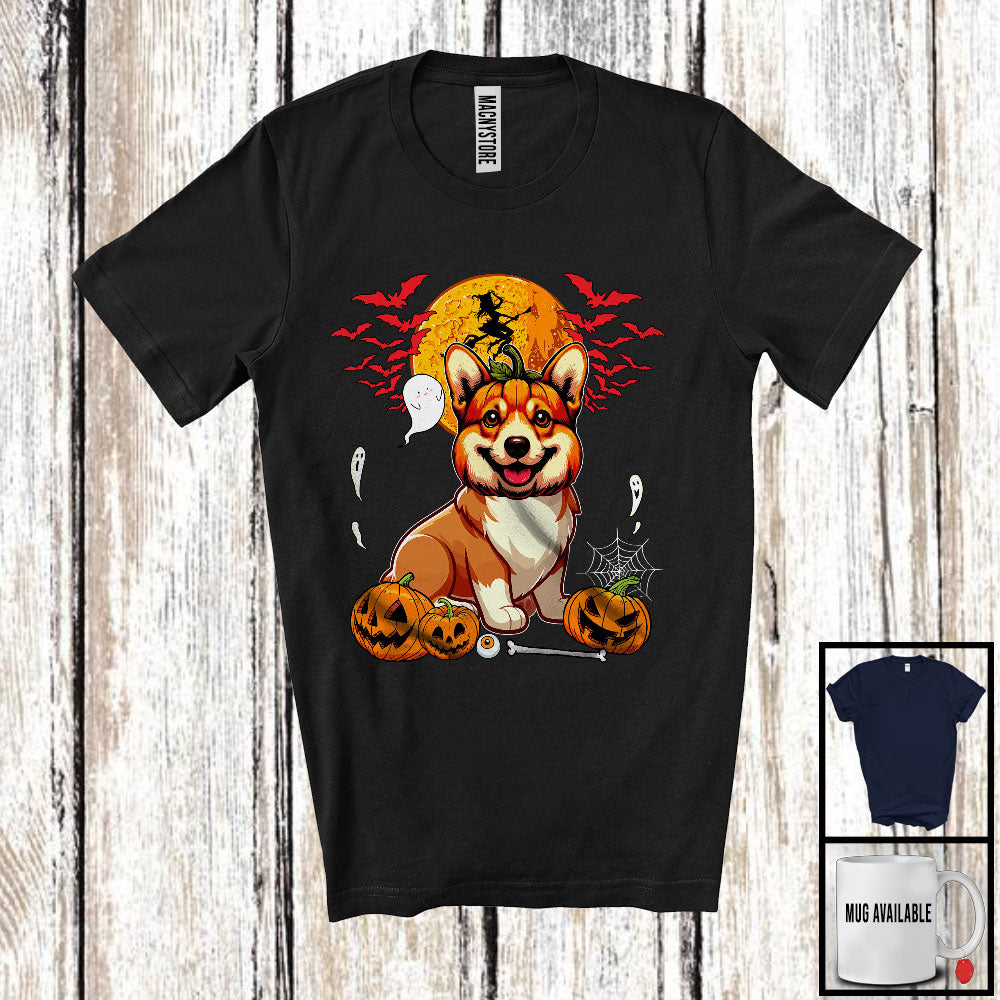 Corgi Pumpkin Face Cosplay, Scary Halloween Costume Corgi Lover, Family Group T-Shirt