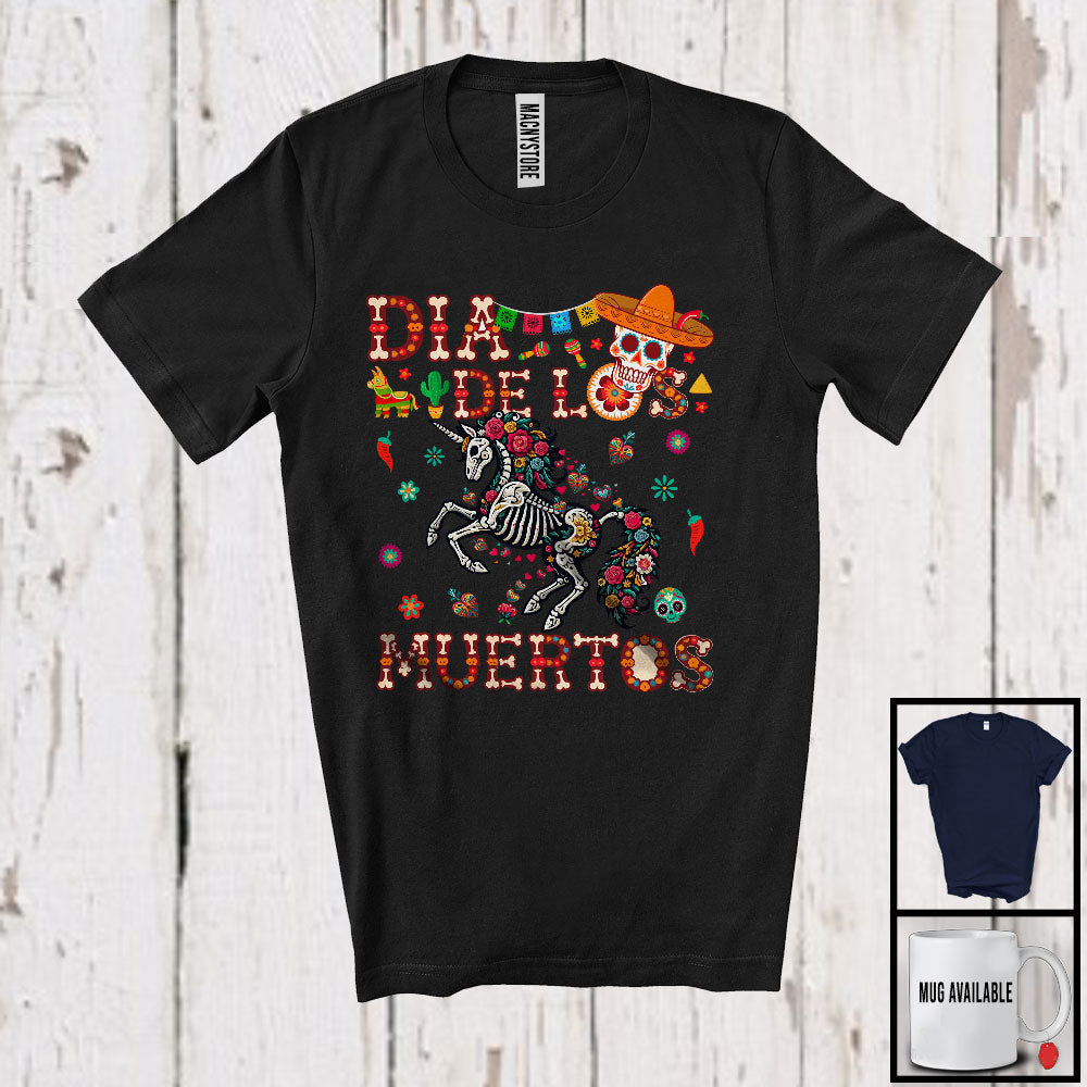 The Dia De Los Muertos; Adorable Unicorn Flowers Sugar Skull Skeleton; Floral Mexican Family Group T-Shirt is evocative, to say the least, but that's why you're drawn to it in the first place.