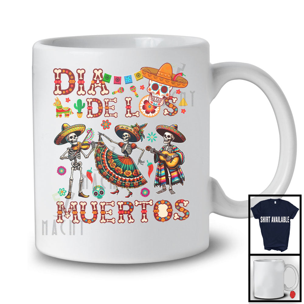 Dia De Los Muertos; Joyful Three Dancing Skeletons Flowers Sugar Skull; Mexican Family T-Shirt