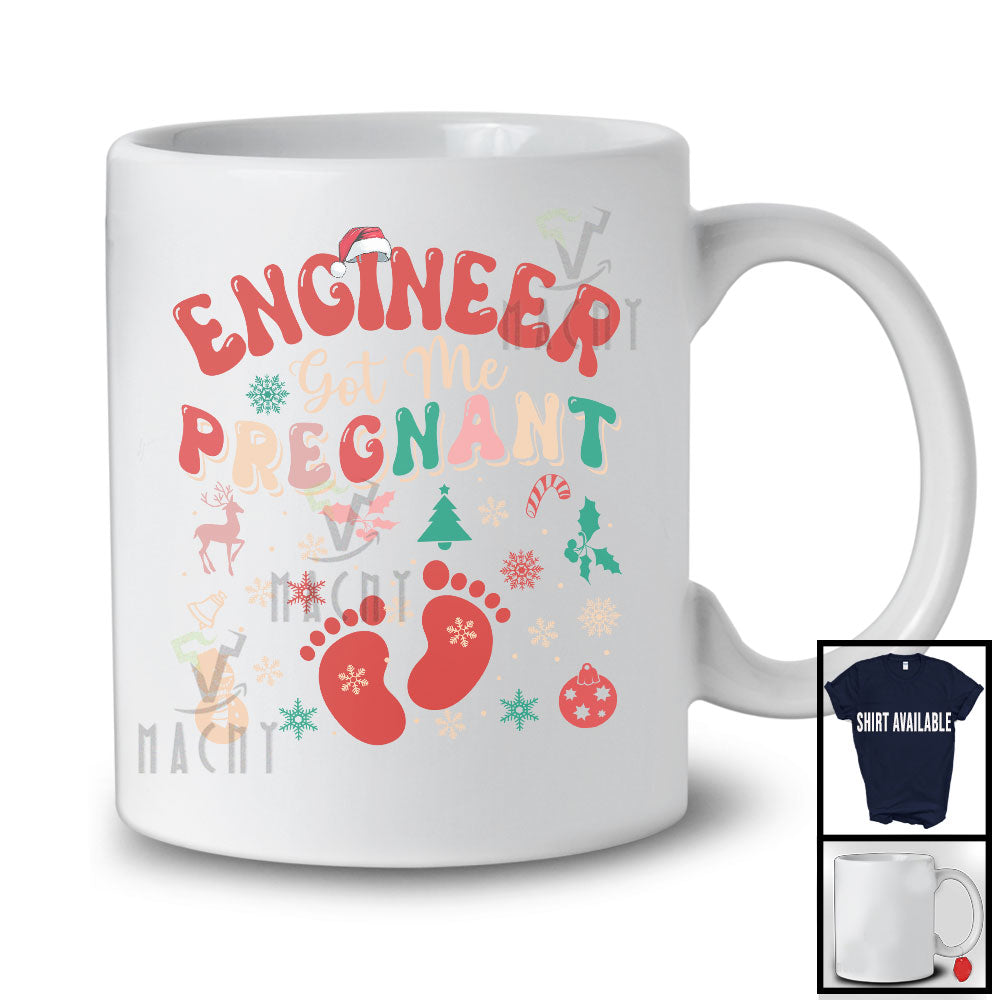 Engineer Got Me Pregnant; Cheerful Christmas Pregnancy Announcement Santa; Jobs Family T-Shirt. This cotton t-shirt is a durable staple product with a classic fit. One of the most popular items, it has a relaxed style made for everyday and casual wear.