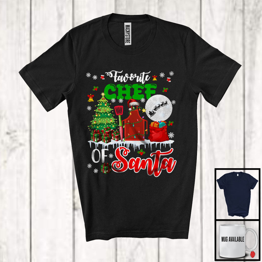 • Favorite Of Santa Chef, Joyful Christmas Lights Tree Santa, X-mas Proud Careers Group T-Shirt. This cotton t-shirt is a durable staple product with a classic fit. One of the most popular items, it has a relaxed style made for everyday and casual wear.