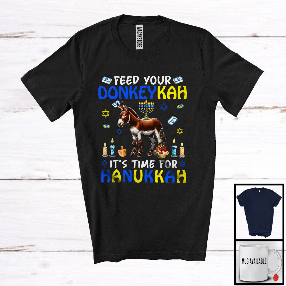 new MacnyStore - Feed Your Donkeykah; Amazing Hanukah Donkey With Menorah; Farm Animal Lover Farmer Group T-Shirt – Macnystore