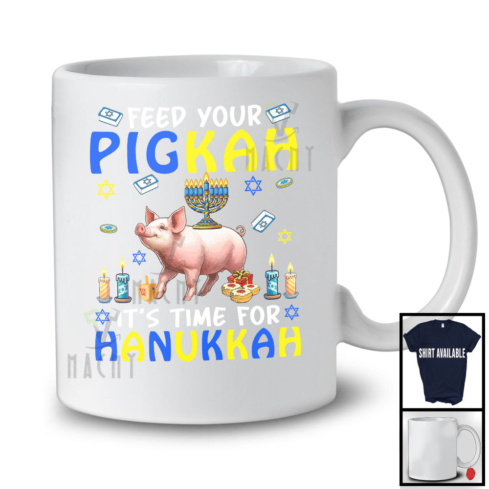 Feed Your Pigkah; Amazing Hanukah Pig With Menorah; Farm Animal Lover Farmer Group T-Shirt. This cotton t-shirt is a durable staple product with a classic fit. One of the most popular items, it has a relaxed style made for everyday and casual wear.