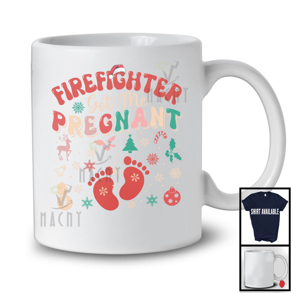 Firefighter Got Me Pregnant; Cheerful Christmas Pregnancy Announcement Santa; Jobs Family T-Shirt. This cotton t-shirt is a durable staple product with a classic fit. One of the most popular items, it has a relaxed style made for everyday and casual wear.