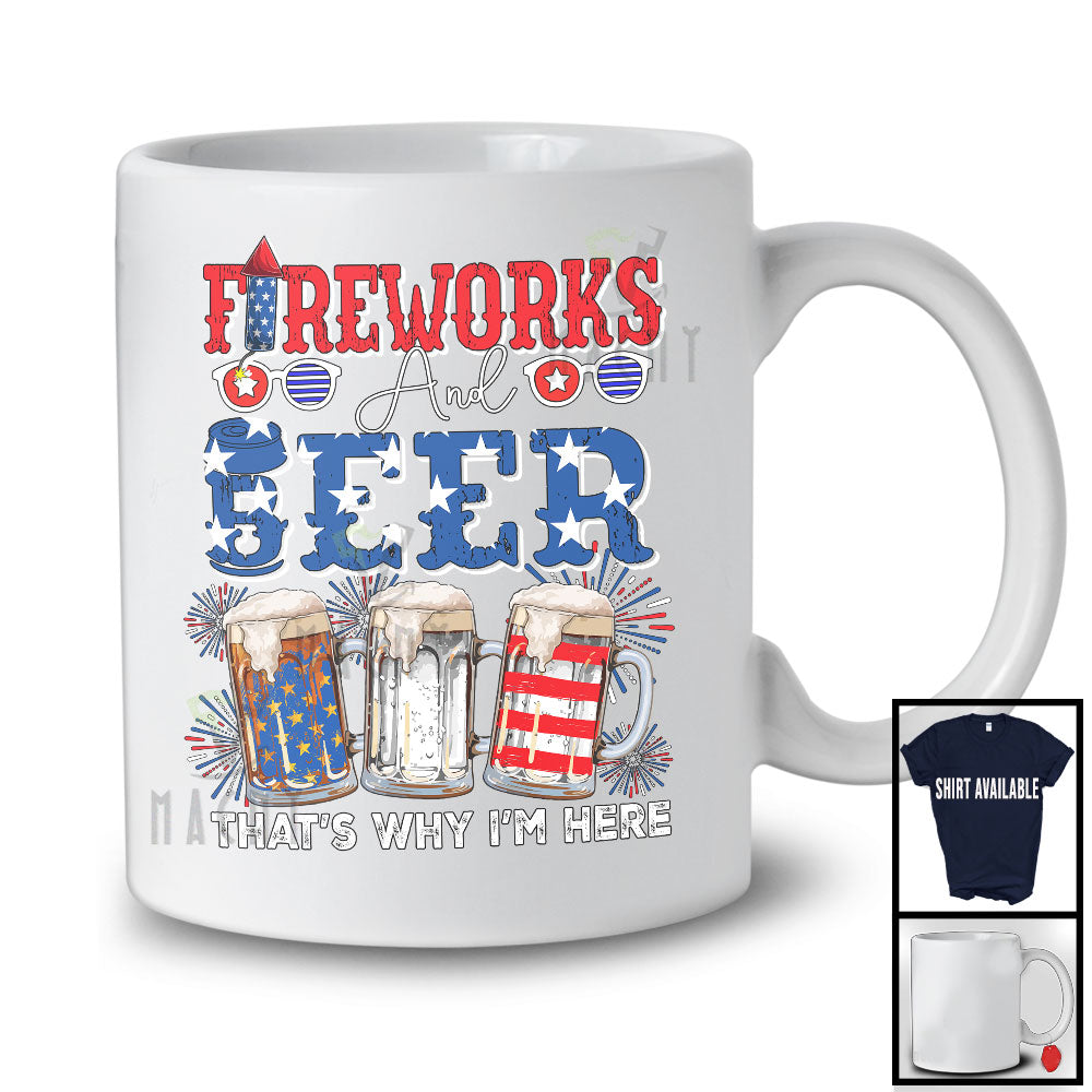 Fireworks And Beer I'm Here, Humorous 4th Of July Three Beer Glasses, Drinking Drunker Patriotic T-Shirt