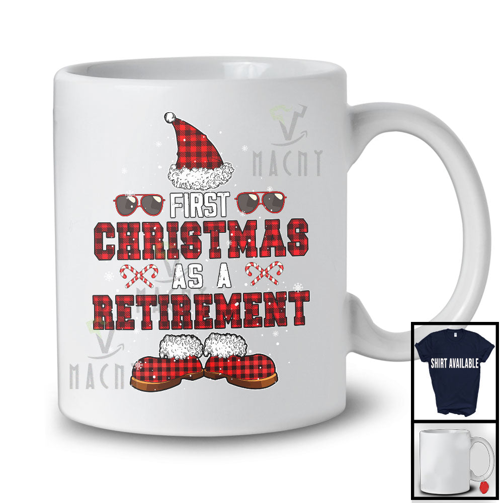 First Christmas As A Retirement; Cheerful Christmas Plaid Santa; Promoting Future Family T-Shirt. This cotton t-shirt is a durable staple product with a classic fit. One of the most popular items, it has a relaxed style made for everyday and casual wear.
