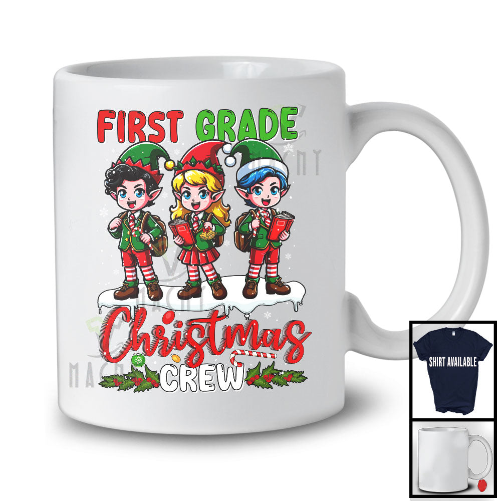First Grade Christmas Crew; Amazing Christmas Three Elf Students Snow; X-mas Teacher Group T-Shirt