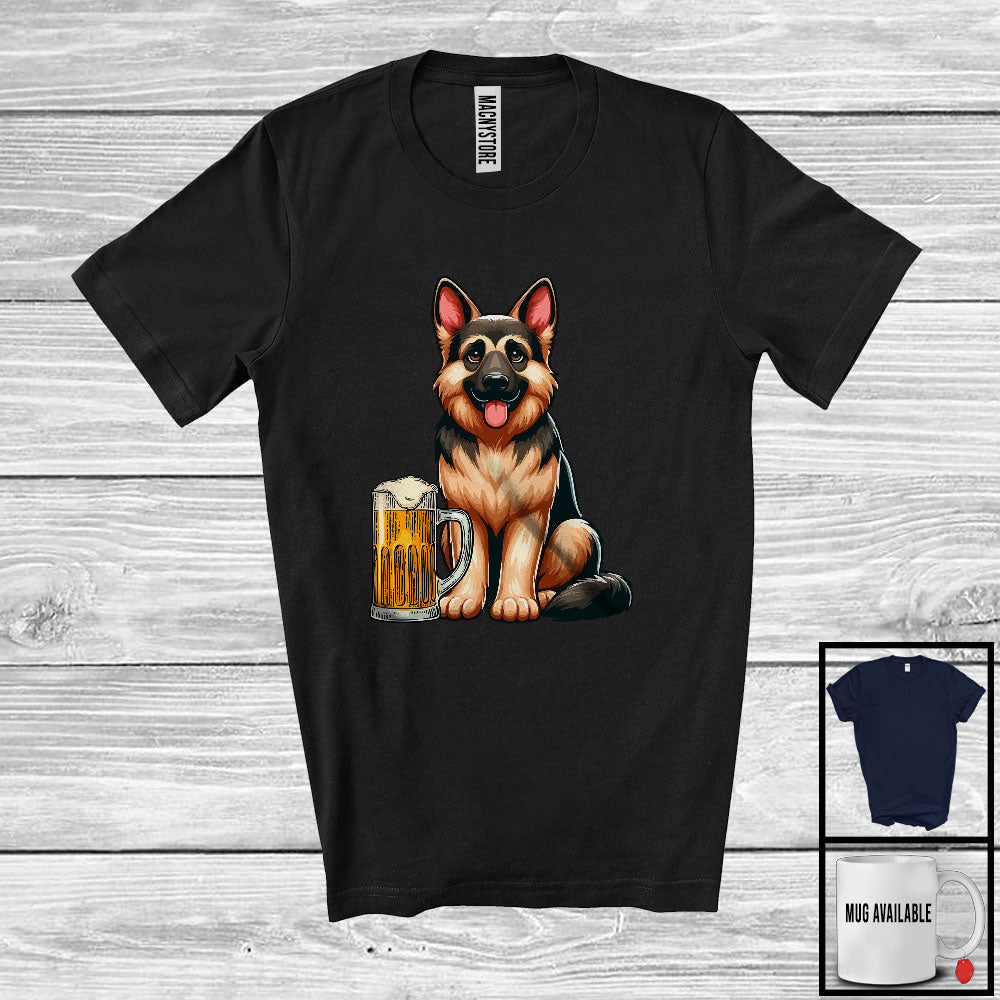 German German Shepherd Drinking Beer; Joyful Oktoberfest Animal Lover; Matching Family Group T-Shirt. This cotton t-shirt is a durable staple product with a classic fit. One of the most popular items, it has a relaxed style made for everyday and casual wear.