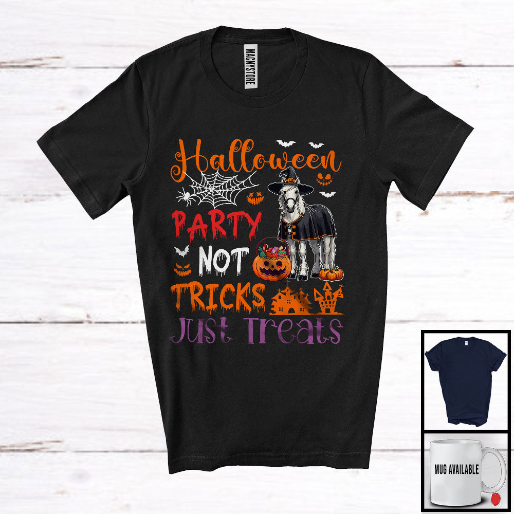 Halloween Party Not Tricks Just Treats, Lovely Witch Horse Farm, Carved Pumpkin Candy Animal T-Shirt