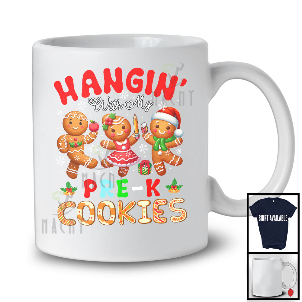 • Hangin' With My Pre-K Cookies Gingerbread; Funny Teacher Gingerbread Lover Christmas T-Shirt. This cotton t-shirt is a durable staple product with a classic fit. One of the most popular items, it has a relaxed style made for everyday and casual wear.