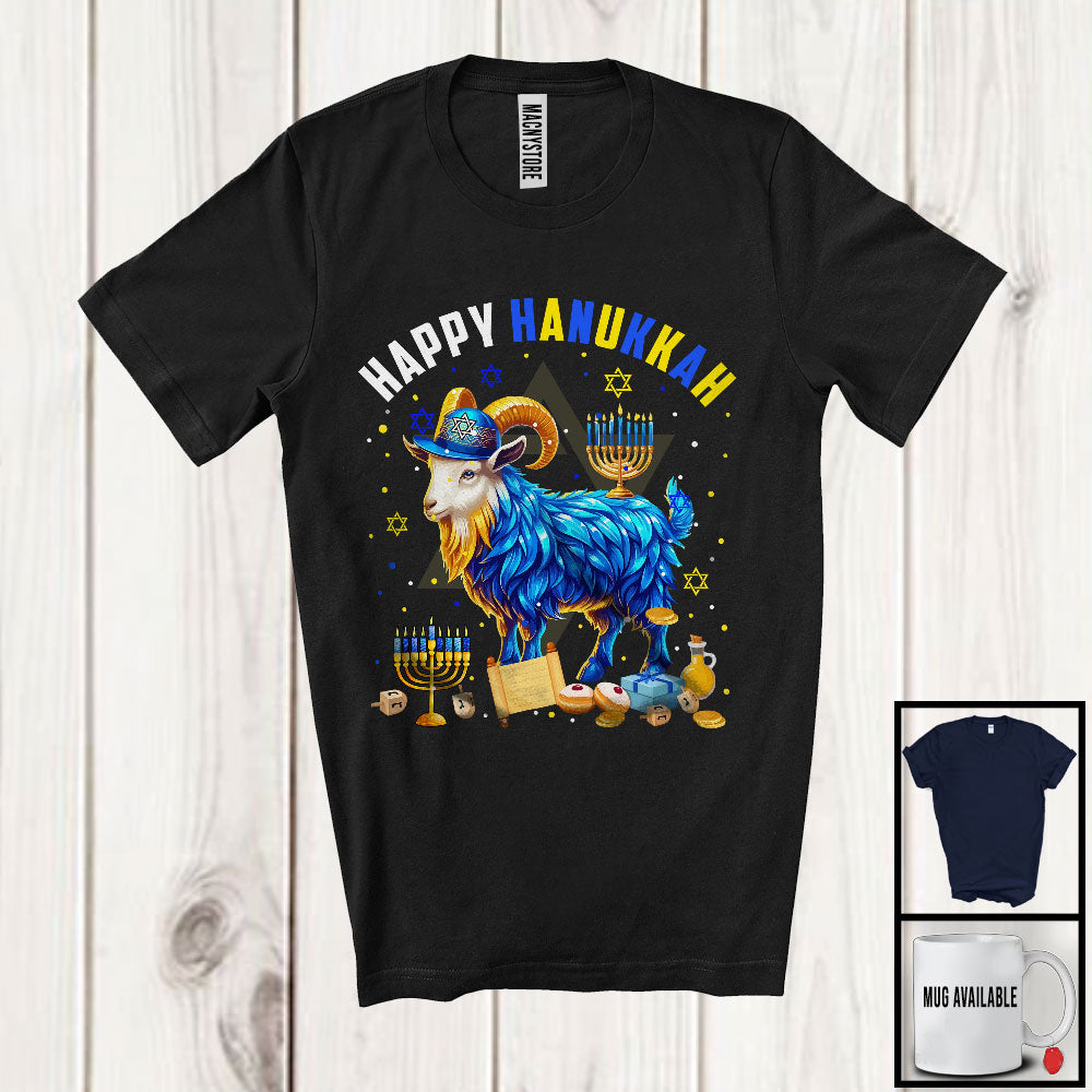 Happy Hanukkah; Lovely Chanukah Goat Wearing Kippah; Farm Animal Farmer Menorah Family T-Shirt