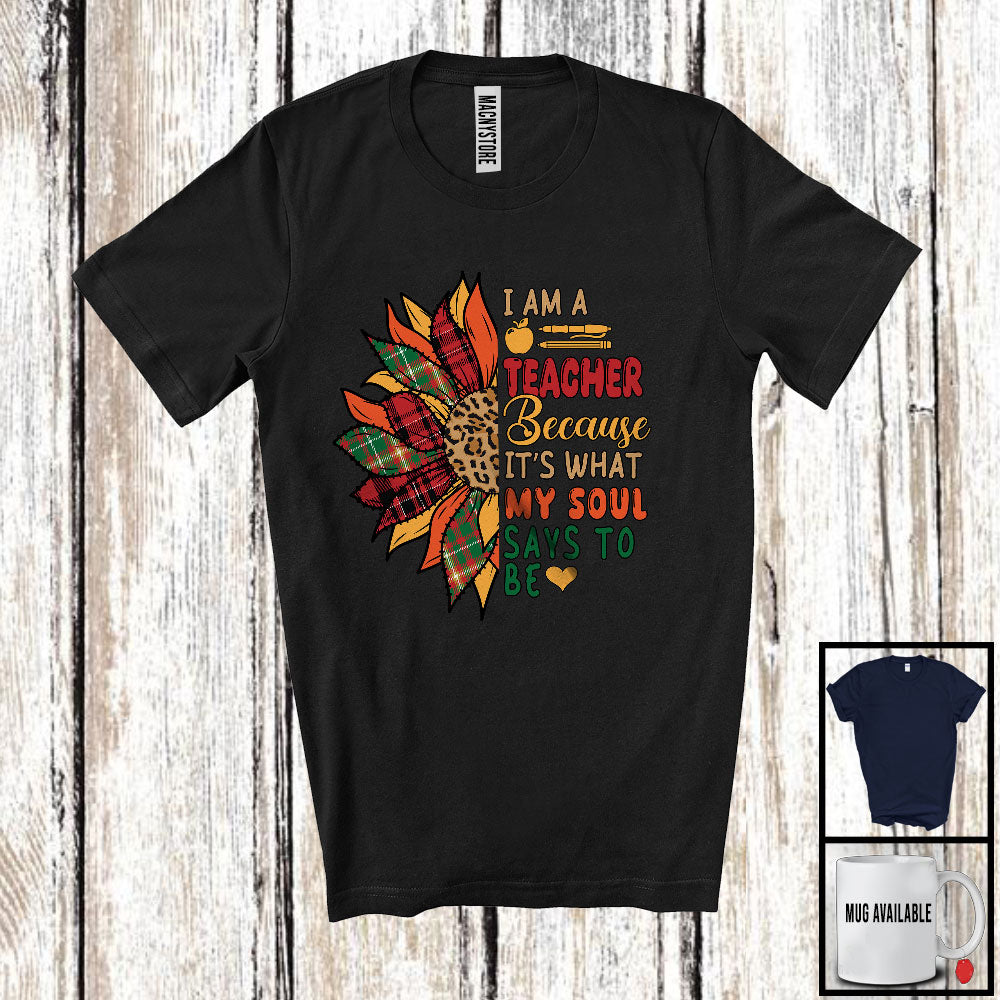 This I Am A Teacher Because My Soul Says To Be, Lovely Leopard Plaid Sunglasses, Flowers Group T-Shirt is great idea gift for your family, friends in this birthday, christmas, mother's day, father's day, patrick's day or any holiday.