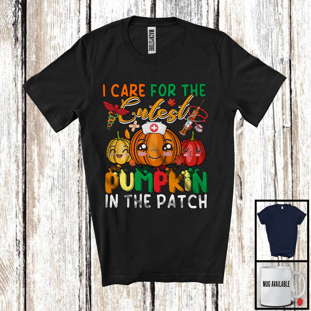 I Care For The Cutest Pumpkin In The Patch; Colorful Thanksgiving Pumpkins Nurse Group T-Shirt
