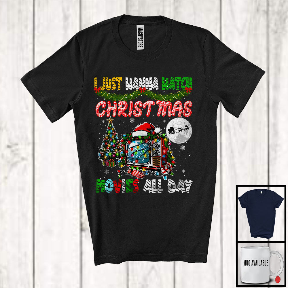 I Just Wanna Watch Christmas Movies All Day, Humorous X-mas Tree Lights Movie Lover, Family T-Shirt