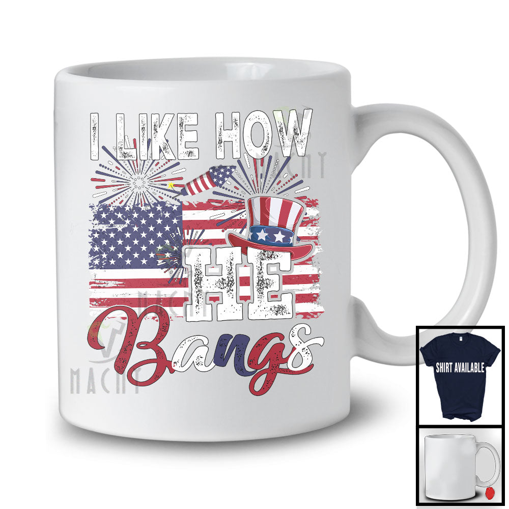 I Like How He Bangs, Cheerful 4th Of July Firecracker American Flag, Couple Proud Patriotic T-Shirt
