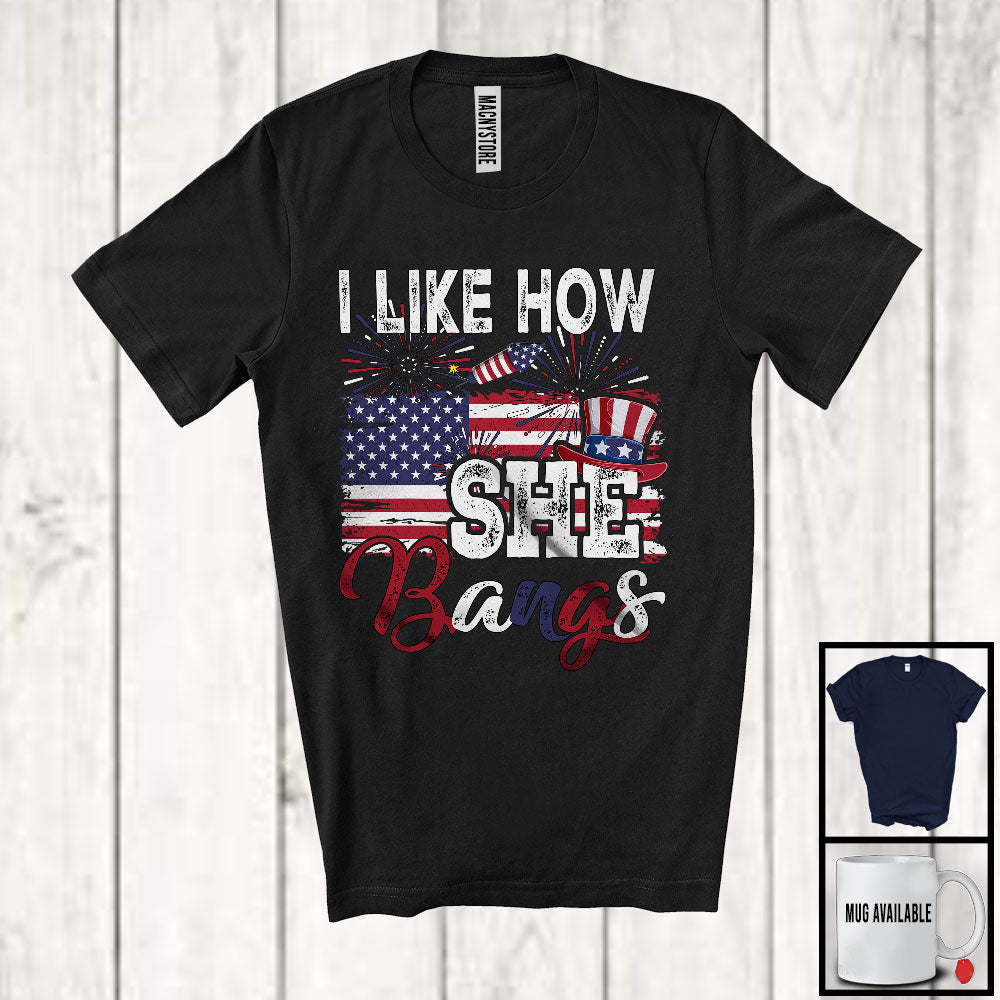 new MacnyStore - I Like How She Bangs, Cheerful 4th Of July Firecracker American Flag, Couple Proud Patriotic T-Shirt – Macnystore
