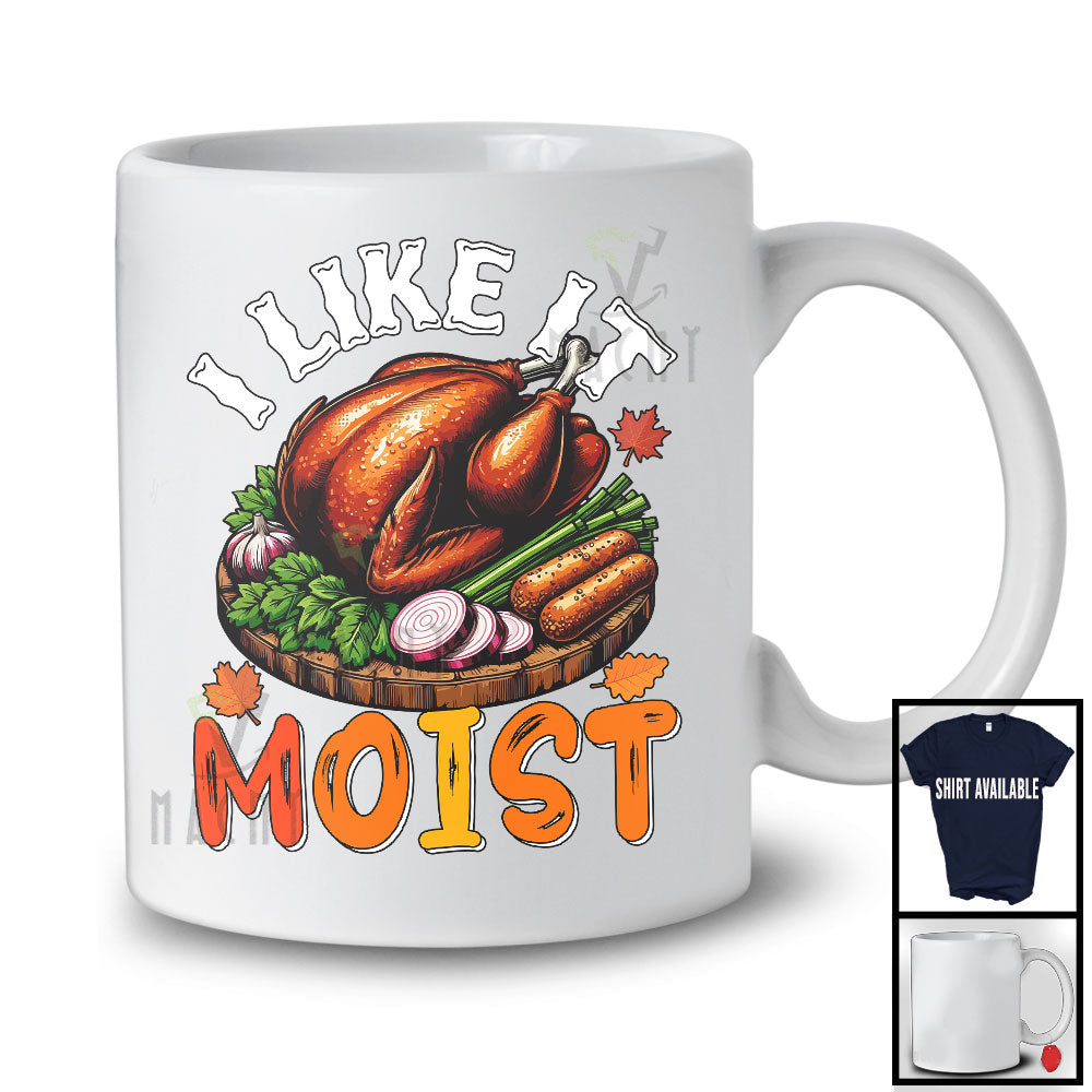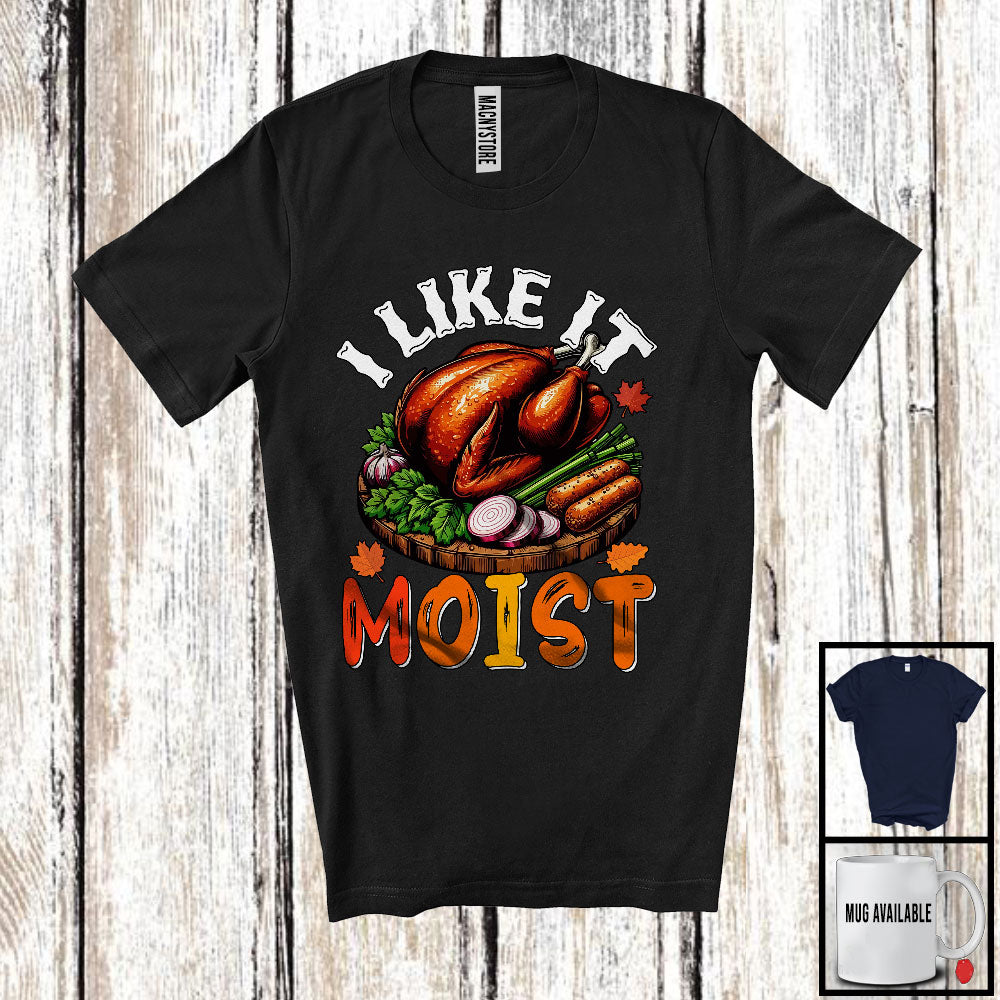 • I Like It Moist, Humorous Thanksgiving Dinner Turkey Lover, Family Group T-Shirt. This cotton t-shirt is a durable staple product with a classic fit. One of the most popular items, it has a relaxed style made for everyday and casual wear.