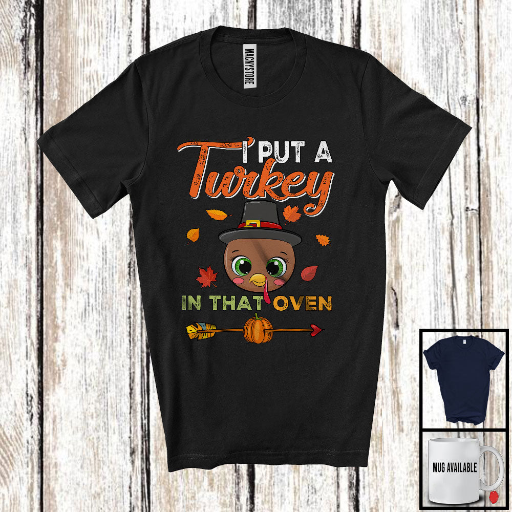 I Put A Turkey In That Oven; Amazing Thanksgiving Pregnancy Turkey Face; Dad Family T-Shirt