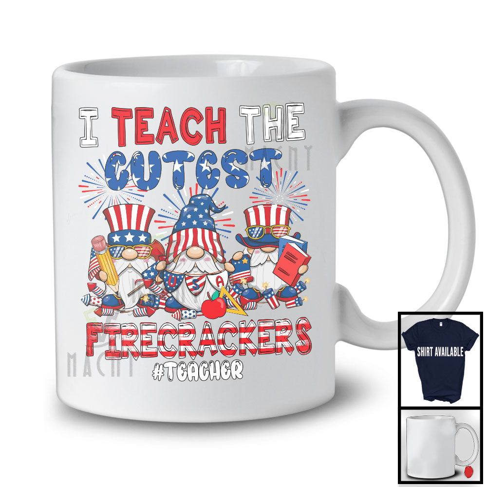 I Teach The Cutest Firecracker, Adorable 4th Of July Patriotic Three Gnomes, Teacher Group T-Shirt