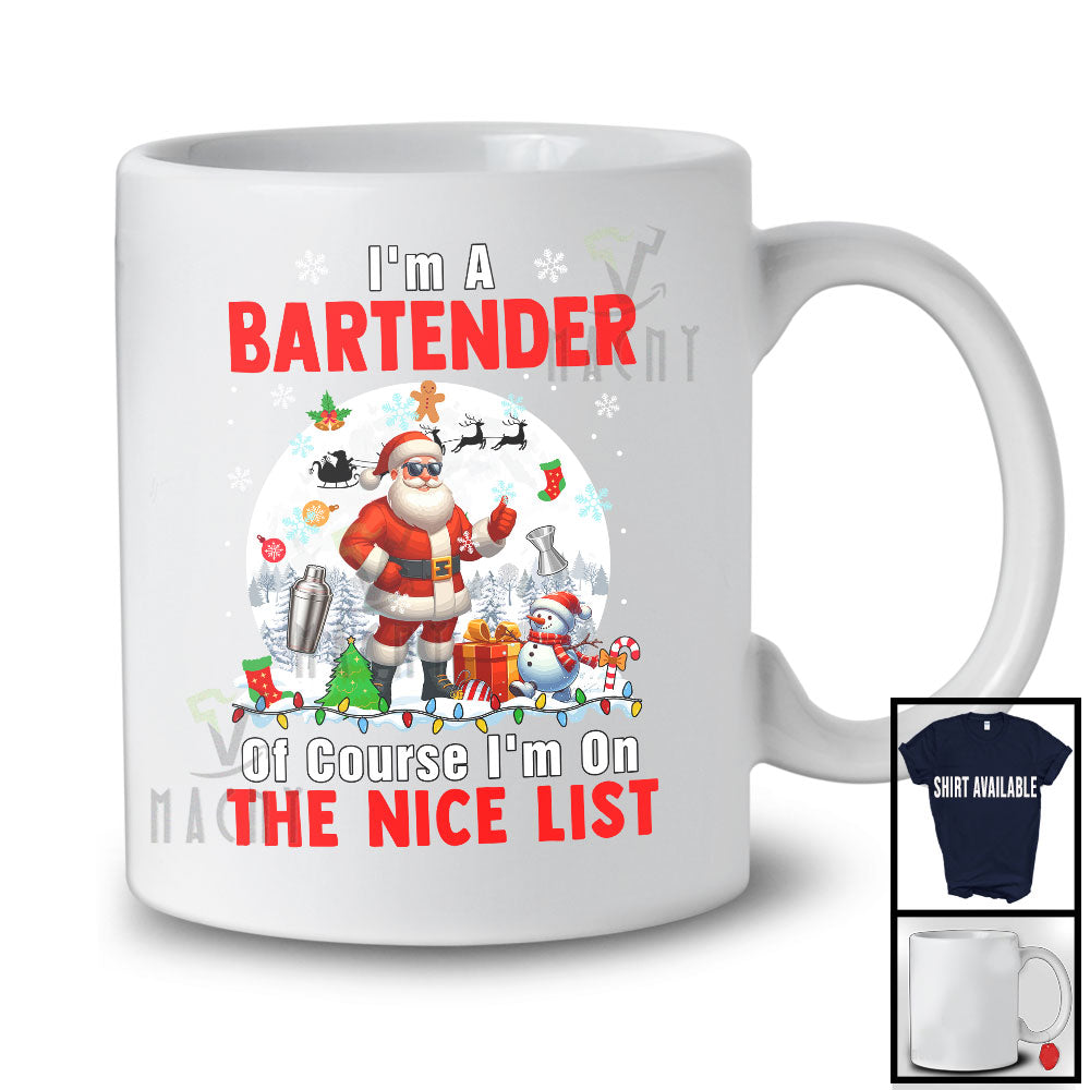 I'm A Bartender I'm On The Nice List; Amazing Christmas Moon Santa Bartender Group; X-mas Jobs T-Shirt