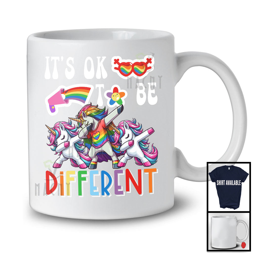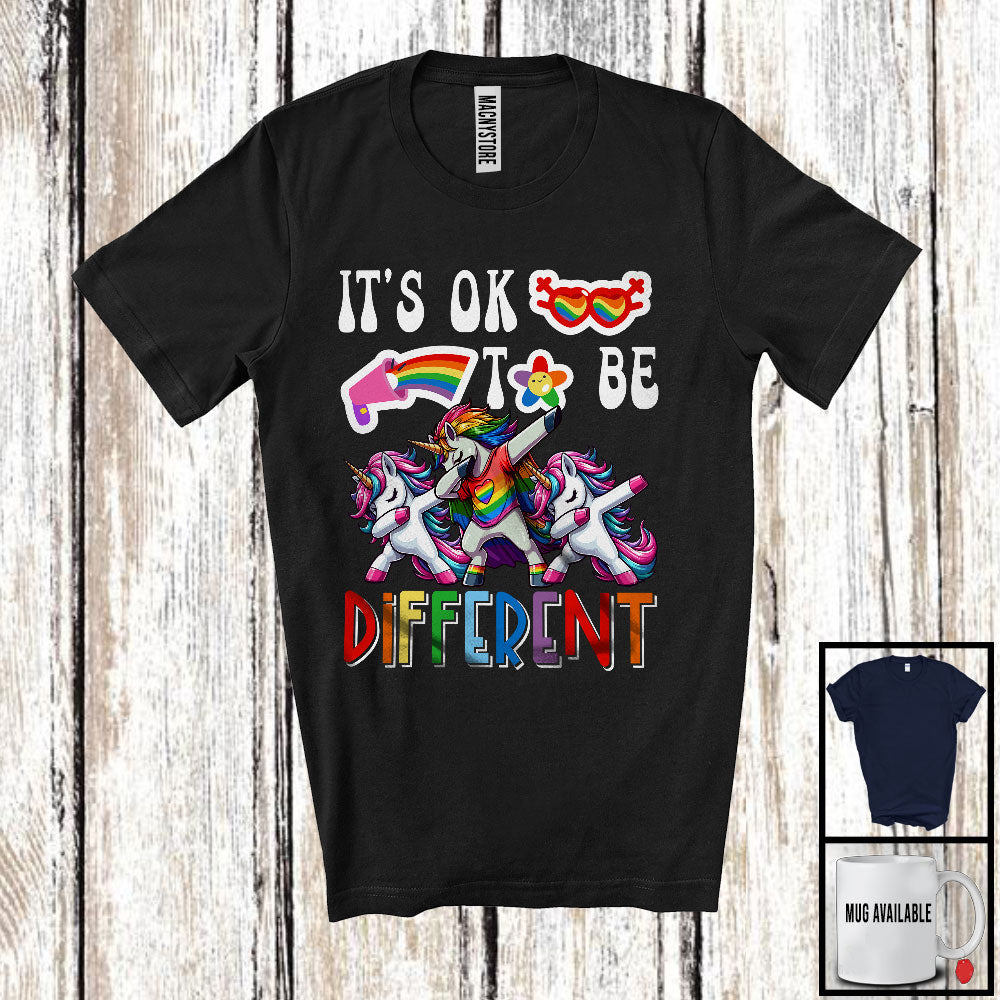 It's Ok To Be Different, Cheerful LGBTQ Pride Dabbing Unicorn, LGBT Flag Gay Lesbian Group T-Shirt