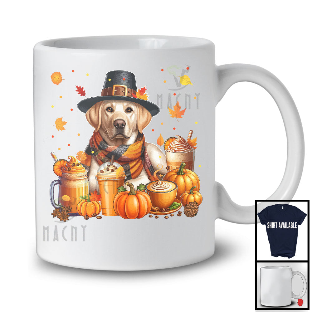 Labrador Retriever With Coffee Smoothie, Wonderful Thanksgiving Pumpkins Drinks Fall Leaves T-Shirt