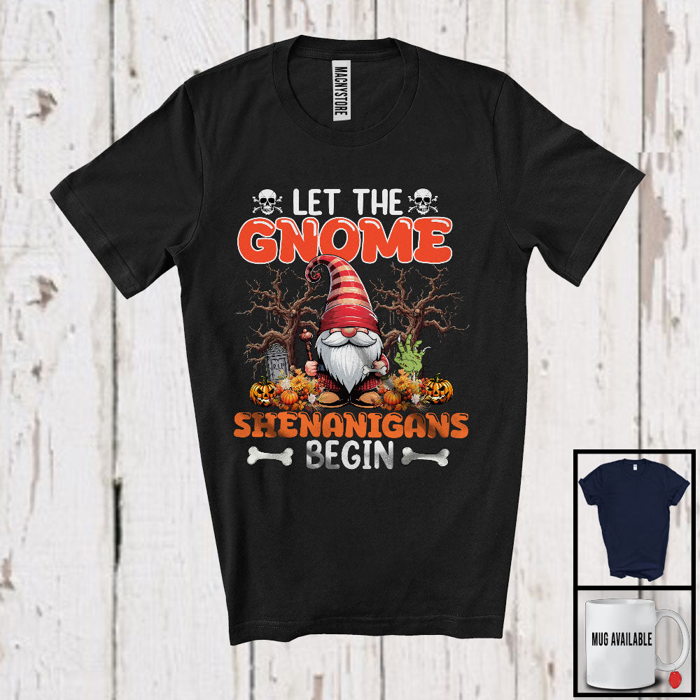 Let The Gnome Shenanigans Begin, Awesome Halloween Gnome Lover, Zombie Hand Pumpkins T-Shirt
