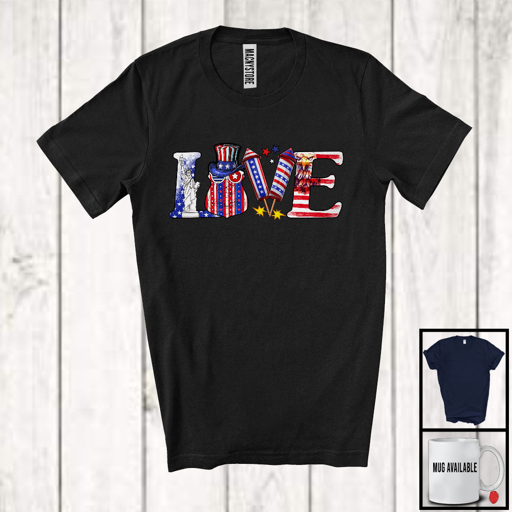 Love, Amazing 4th Of July USA Flag Police Officer, Independence Day Firecrackers Proud Patriotic T-Shirt