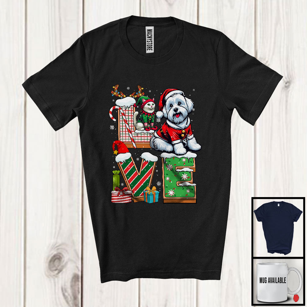 LOVE, Joyful Christmas Santa Maltese Owner Lover, X-mas Candy Cane Snowing Around T-Shirt