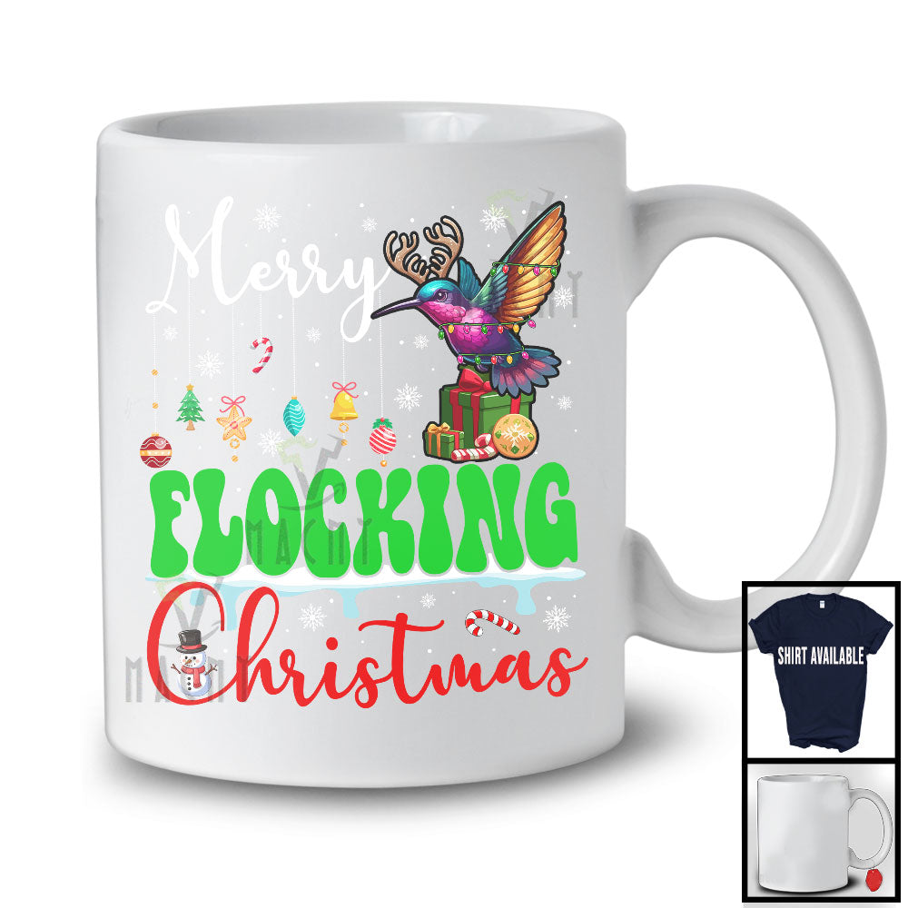 This Merry Flocking Christmas; Cheerful X-mas Lights Santa Hummingbird Snowing; Bird Family Group T-Shirt is great idea gift for your family, friends in this birthday, christmas, mother's day, father's day, patrick's day or any holiday.