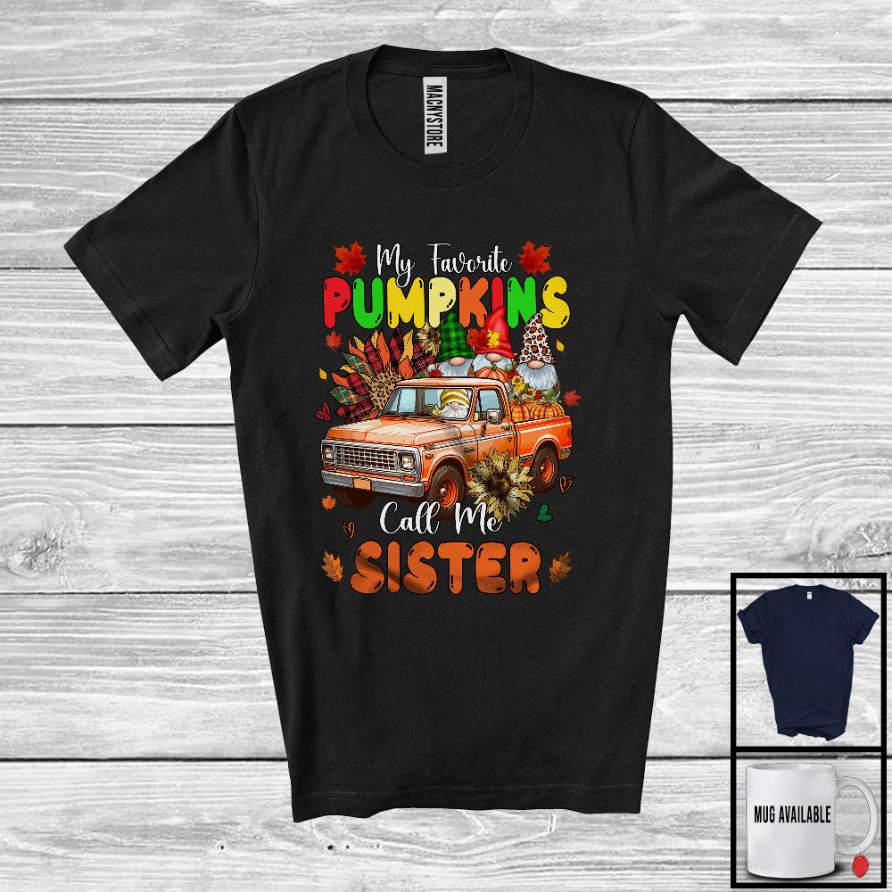 My Favorite Pumpkins Call Me Sister; Lovely Thanksgiving Family Gnomes On Truck; Plaid Sunflowers T-Shirt