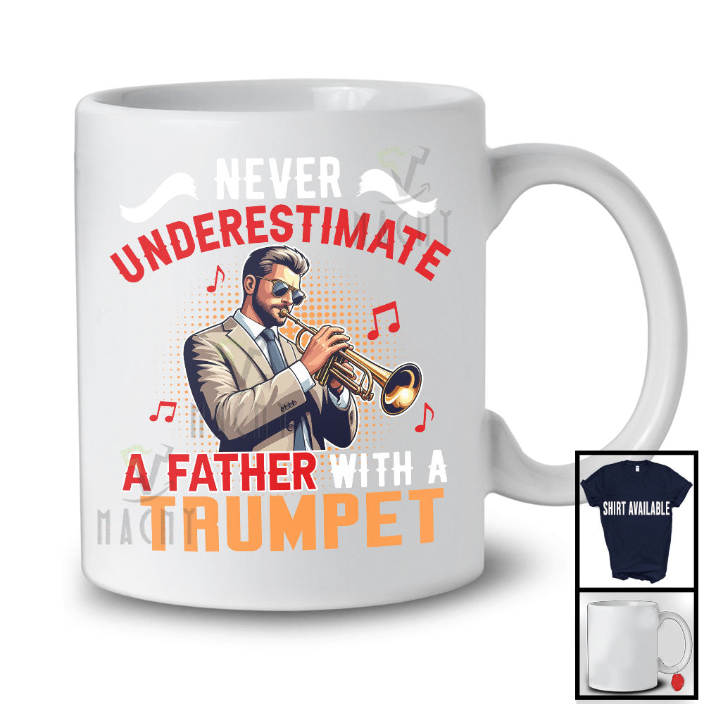 Never Underestimate A Father With A Trumpet, Amazing Father's Day Musical Instruments Player T-Shirt