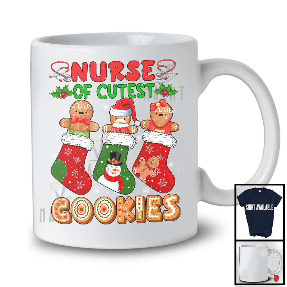 Nurse Of Cutest Cookies; Adorable Christmas Three Gingerbread In Socks; Baker T-Shirt. This cotton t-shirt is a durable staple product with a classic fit. One of the most popular items, it has a relaxed style made for everyday and casual wear.