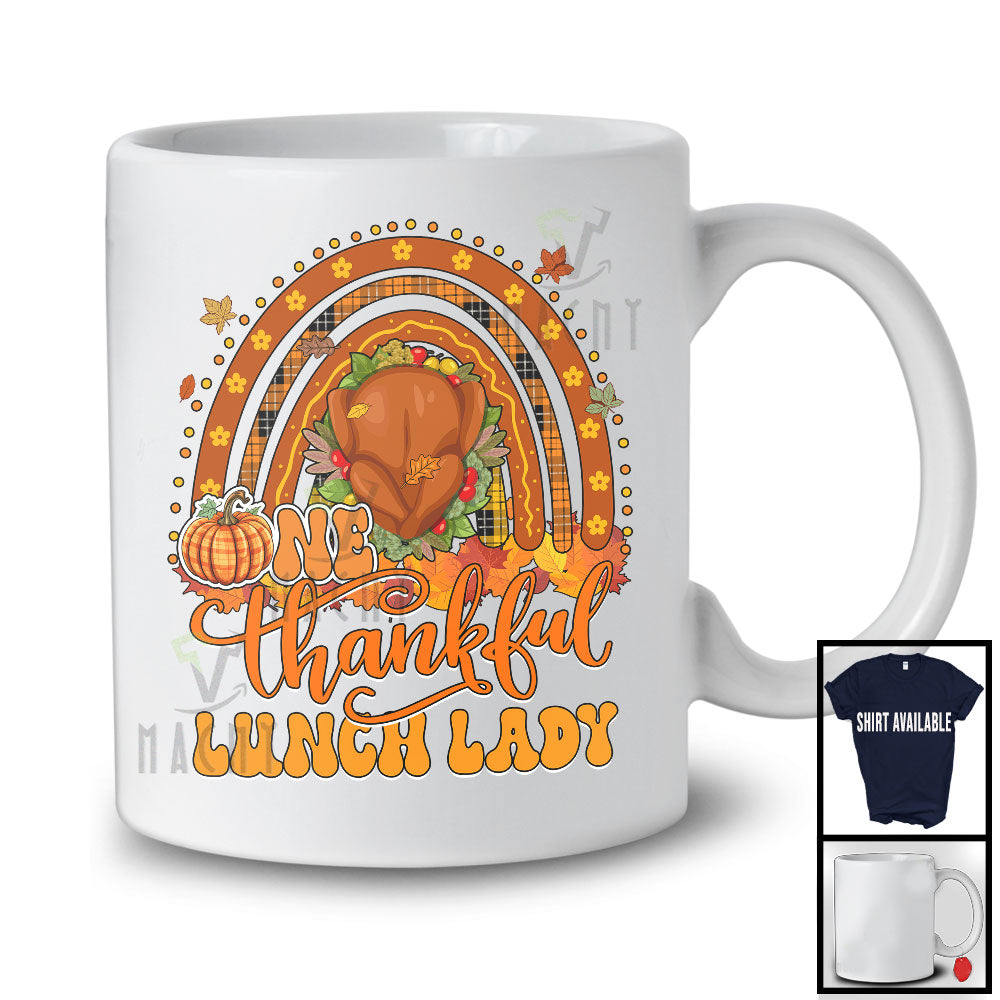 One Thankful Lunch Lady; Happy Thanksgiving Plaid Pumpkin Rainbow; Fall Leaves Turkey T-Shirt. This cotton t-shirt is a durable staple product with a classic fit. One of the most popular items, it has a relaxed style made for everyday and casual wear.