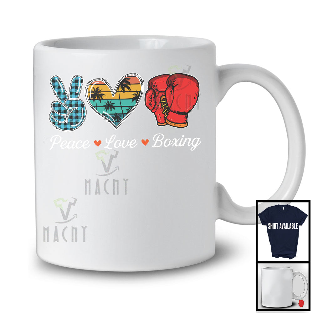 The Peace Love Boxing, Adorable Peace Hand Sign Plaid Retro Heart, Boxing Player Matching Team T-Shirt is evocative, to say the least, but that's why you're drawn to it in the first place.