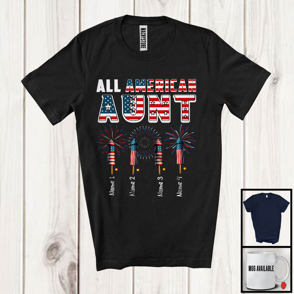 Personalized All American Aunt, Awesome 4th Of July Patriotic Fireworks, Custom Name Family T-Shirt