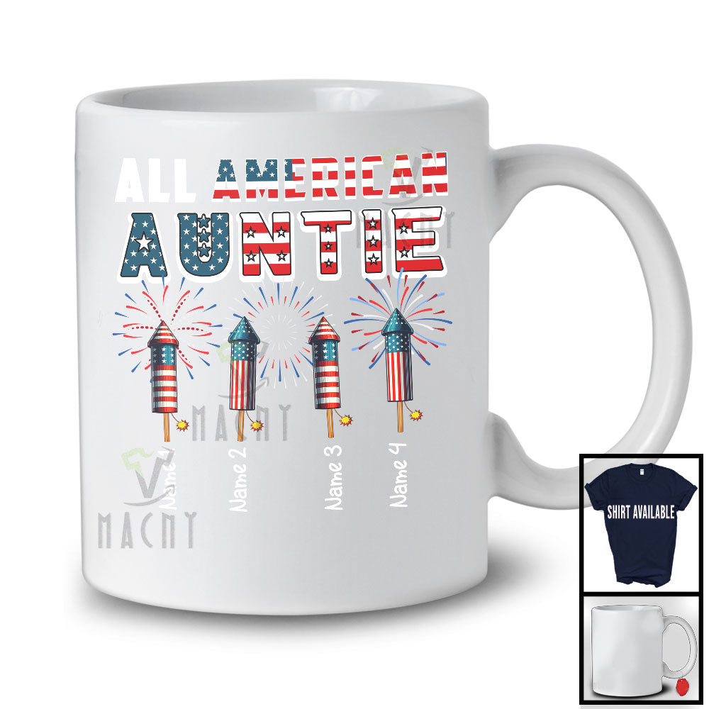 Personalized All American Auntie, Awesome 4th Of July Patriotic Fireworks, Custom Name Family T-Shirt