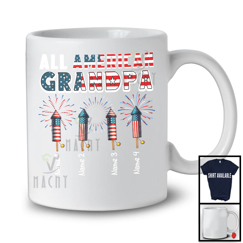 Personalized All American Grandpa, Awesome 4th Of July Patriotic Fireworks, Custom Name Family T-Shirt