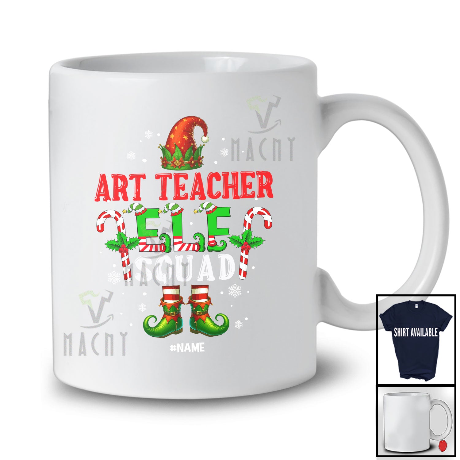 Personalized Art Teacher Elf Squad; Proud Christmas Custom Name Students Teacher Group T-Shirt. This cotton t-shirt is a durable staple product with a classic fit. One of the most popular items, it has a relaxed style made for everyday and casual wear.