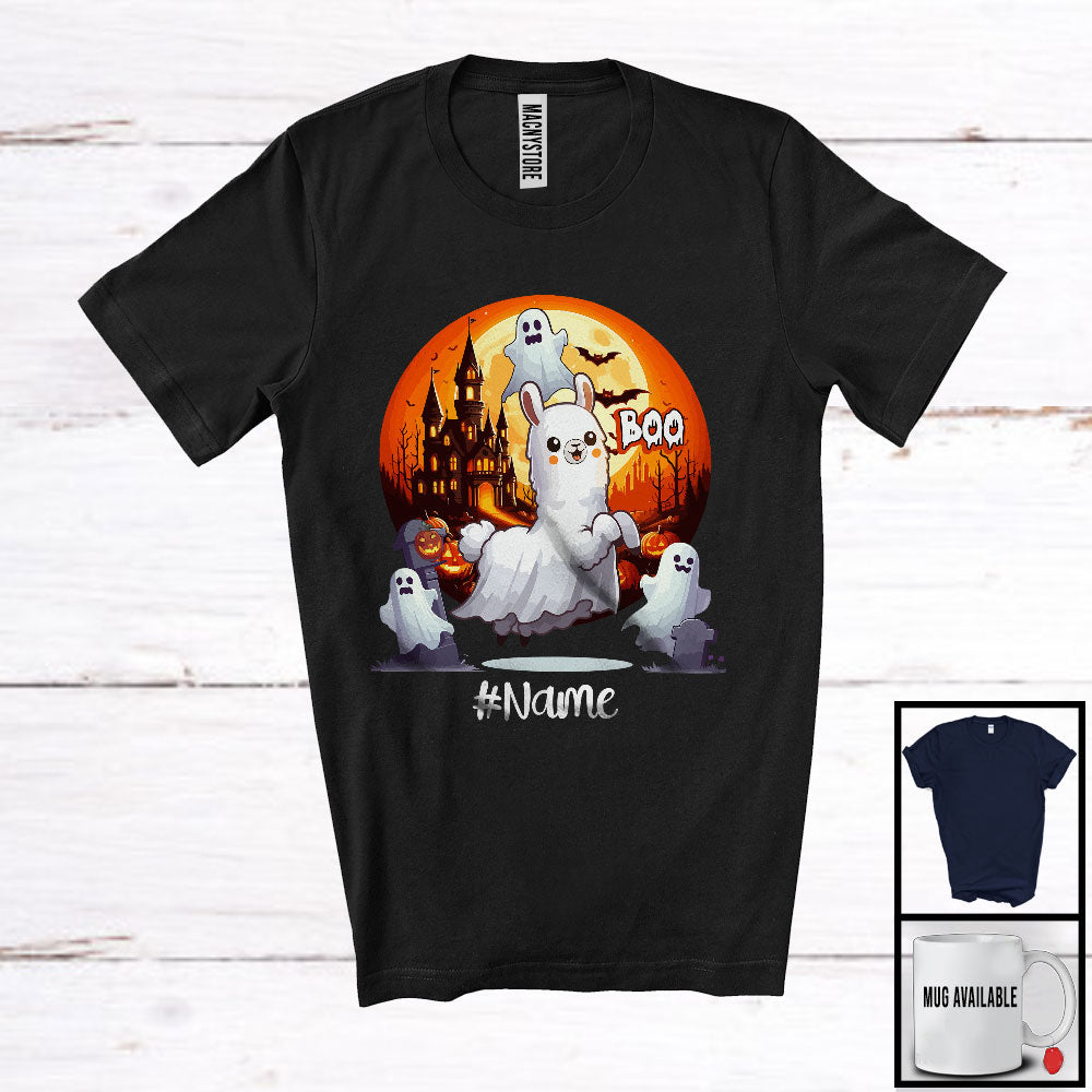 new MacnyStore - Personalized Boo, Humorous Halloween Boo Ghost Custom Name Llama, Pumpkin Moon T-Shirt – Macnystore