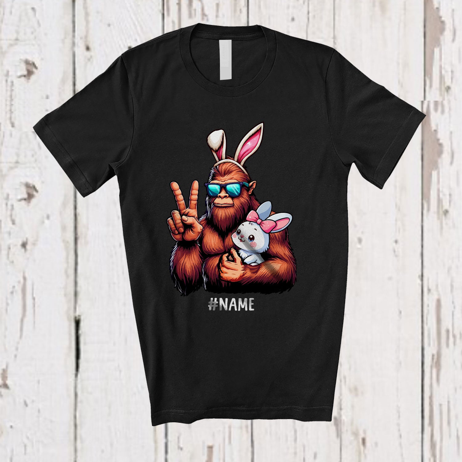 Personalized Bunny Bigfoot Sunglasses; Lovely Easter Sasquatch Bigfoot; Custom Name Family T-Shirt