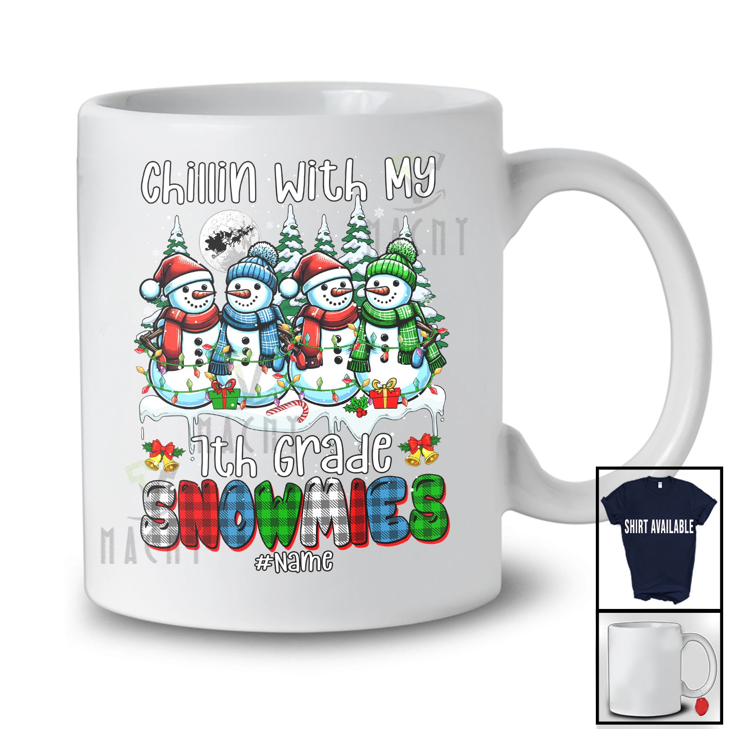 Personalized Chillin' With My 7th Grade Snowmies; Plaid Custom Name Teacher; Snowman T-Shirt. This cotton t-shirt is a durable staple product with a classic fit. One of the most popular items, it has a relaxed style made for everyday and casual wear.