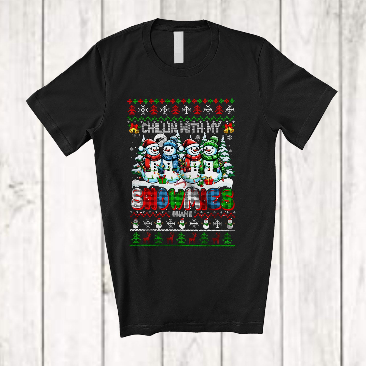 Personalized Chillin' With My Snowmies; Plaid Sweater Custom Name Family; Four Snowman T-Shirt